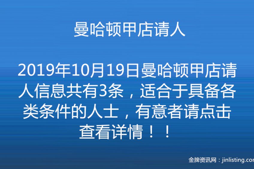 1.曼哈顿高级甲店白区,高薪诚请熟手全职男女小工,中工,下午工,会sns佳,生手.part-time勿扰,有意请电 3476978942