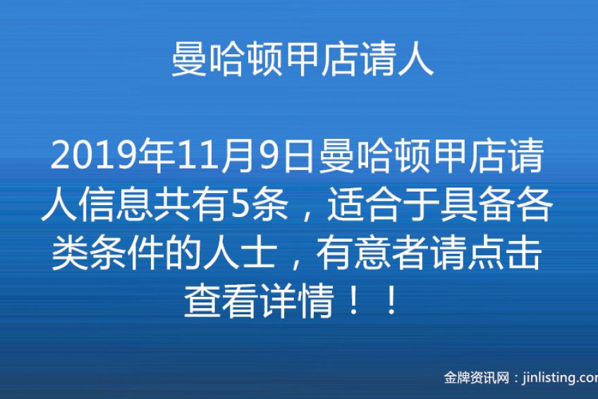 4.甲店请人 曼哈顿请经验小工,大工FT/PT,下午工,周末工有意请联系:929-426-2584