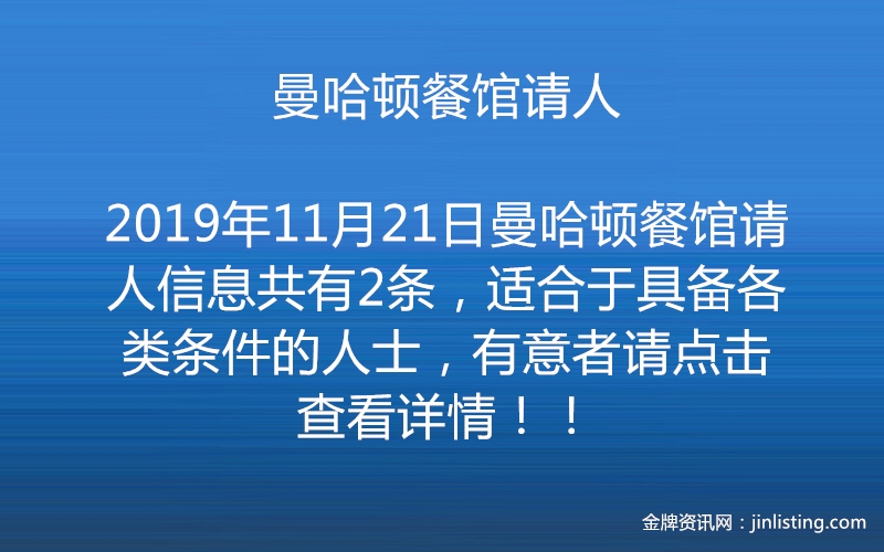 1.曼哈顿唐人街中餐 “诚聘熟手企台,工资待遇优。 下午两点以后拨打☎:6262672521”
