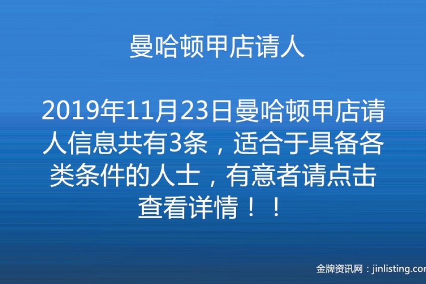 1.曼哈顿美甲店招聘熟手工和下午5点至10点电347 703 3198