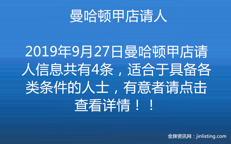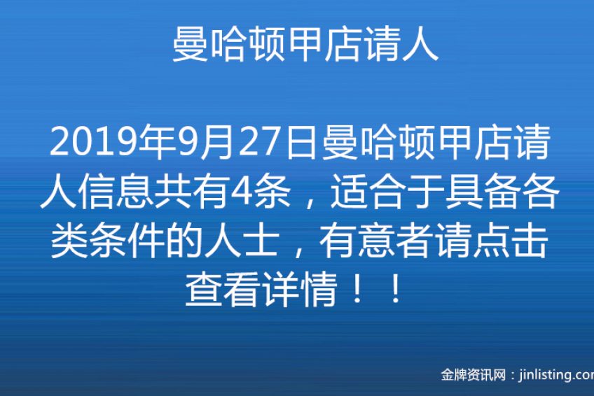 1.曼哈顿甲店区好提成多小费好诚招熟手小工347-654-4764