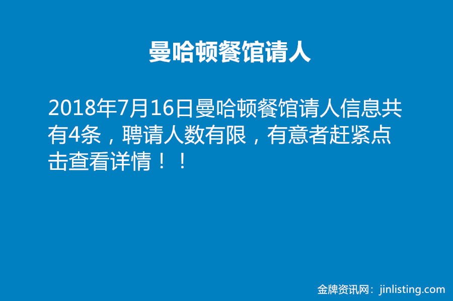 4、曼哈顿中歺招聘企台和包外卖917856772@