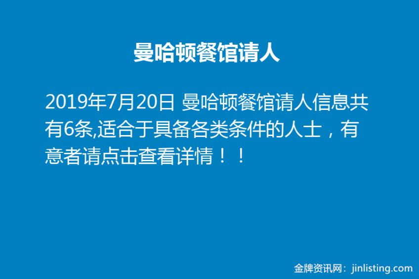 “曼哈顿中城Columbus cycle饺子店请全职收银 要求:必须有卫生证 讲流利英文 干净勤快 交通方便 工资优待 包餐 有意电 7183094906”