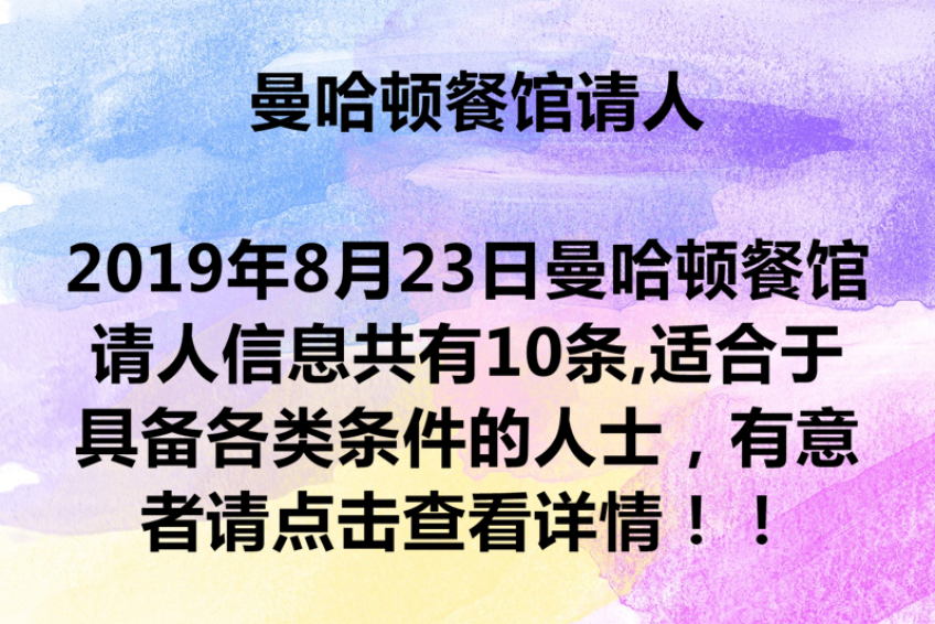 曼哈顿/日餐/请企台/ 近唐人街/一周4天/可以赚4千左右/有午休/ 请电 6462268888