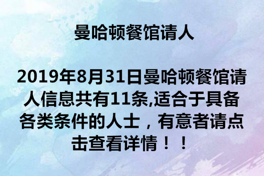 曼哈顿餐馆请人