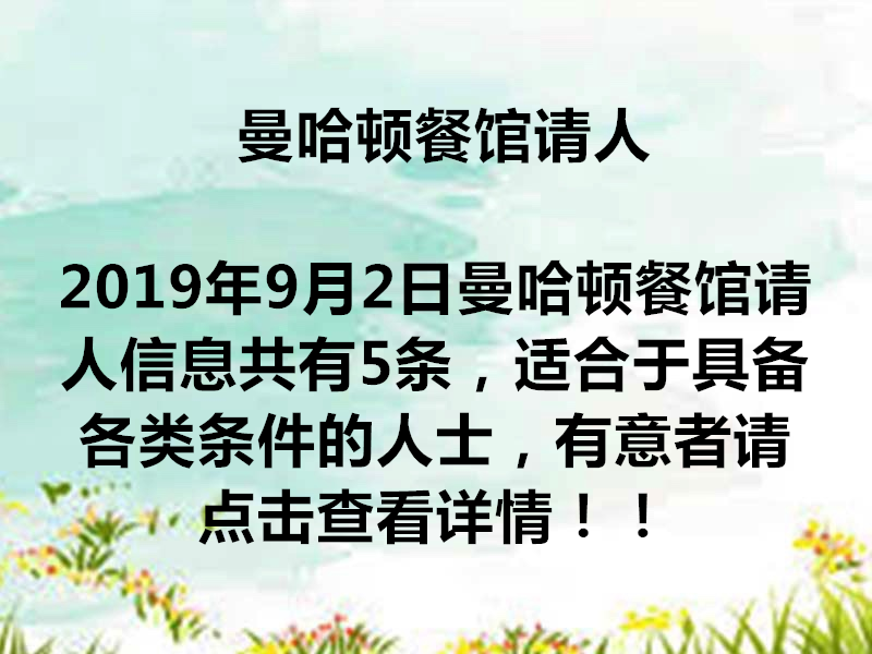 请人,熟手曼哈顿餐馆日本餐请40岁以上男917-982-3656