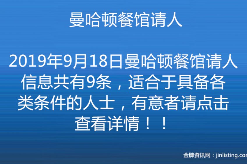 曼哈顿餐馆请年轻煮面 “要求: 1. 会简单英文 2. 有过餐馆或奶茶店经验 请短信: 646-250-6688”