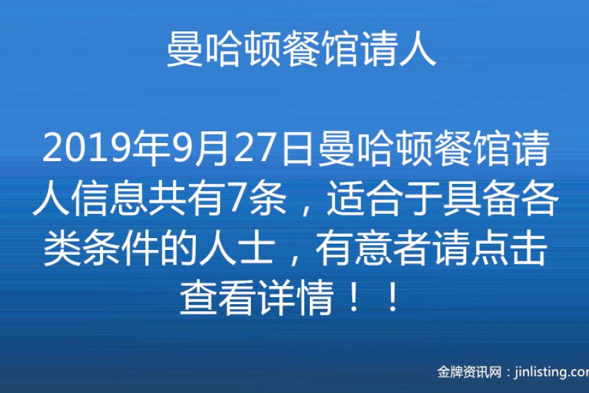 曼哈顿新开火锅店招人啦! “有没有想找工作的小伙伴呀 曼哈顿新开的火锅店招人啦! 店长年轻 待遇超好 环境优美 有底薪+小费 只要你是一个踏实 努力的人 中英文流利 可以报税 有工作经验 最好有食品卫生许可证 我们都欢迎你加入我们的团队! 详情请电话或短信咨询 6464094080 哦~”