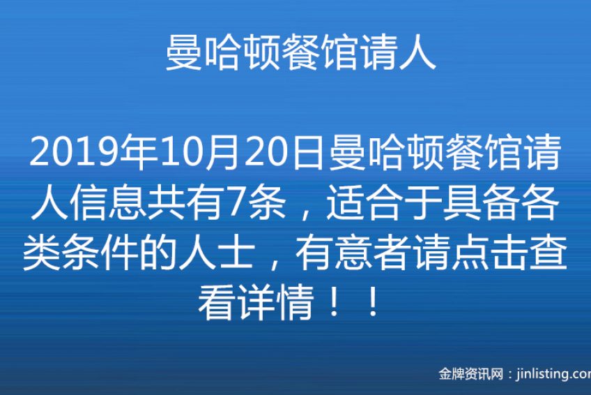 曼哈顿火锅店招聘全职服务生 “有没有想找工作的小伙伴呀 曼哈顿火锅店招人啦! 店长年轻好相处 待遇好环境优 有底薪+小费 只要你是一个踏实 努力的人 中英文流利 可以报全稅 有餐饮行业/火锅店工作经验 最好有食品卫生许可证 我们都欢迎你加入我们的团队! 详情请电话或短信咨询 6464094080 哦~”