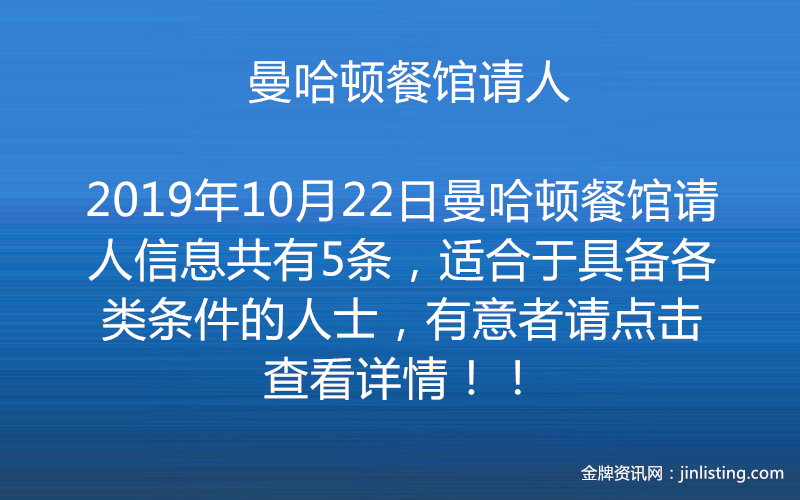 曼哈顿中餐诚请一名头台阿姐,有意请电3473487167