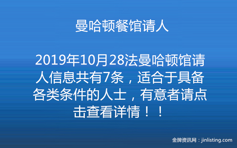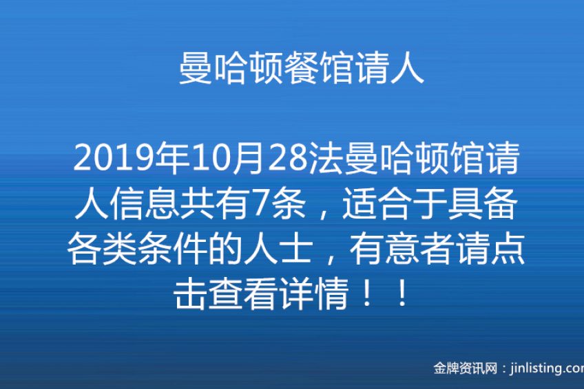 曼哈顿新张高级中餐川粤餐厅高薪聘请多年经验黑衫企台和Captain,要有团队精神 做事不计较,(懂酒水更好)收银 打包 带位 FT/PT .需报税 需熟手 有意者联系 6462868012