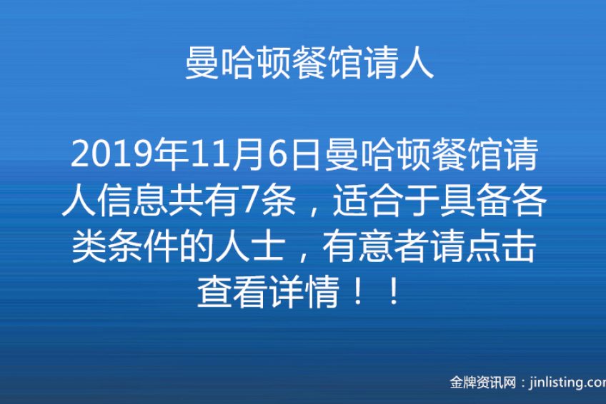 曼哈顿中餐 “诚聘抓码师傅、烧烤学徒 9808882222 下午两点以后拨打、谢谢”