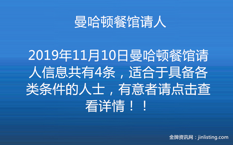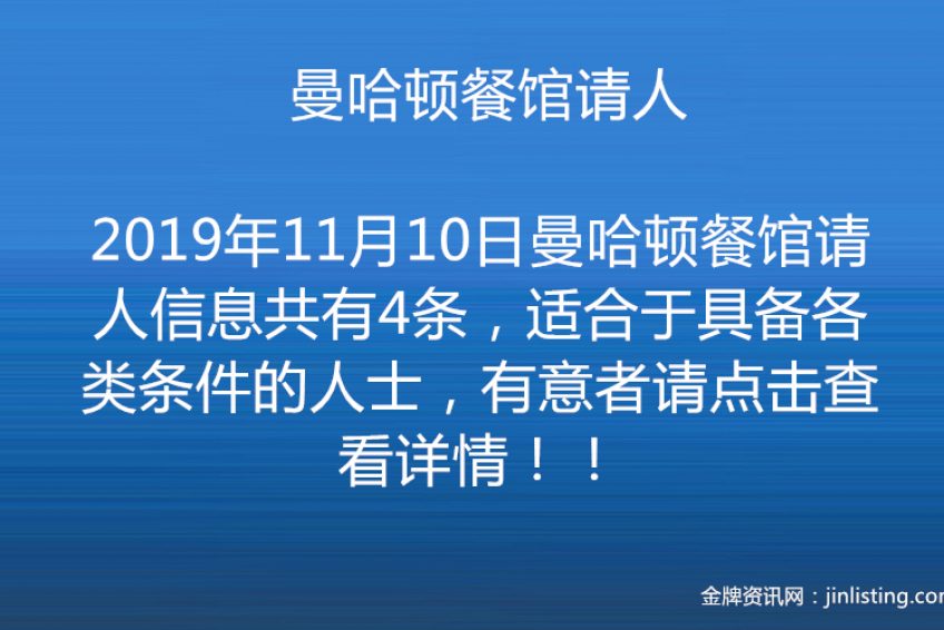 曼哈顿火锅店请周末兼职bus boy “要求:吃苦耐劳 做事认真 细心负责 会基本的英语交流 有火锅店/餐饮行业工作经验 须有身份可报税(底薪$10/小时 有小费) 联系人电话:6464094080”