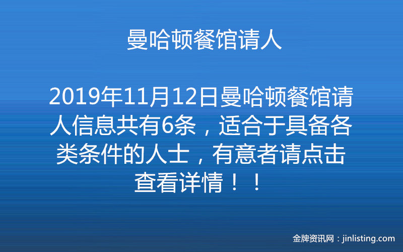曼哈顿中餐馆 “诚聘熟手企台。 请下午两点以后致电:6262672521”