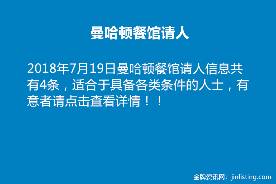 4、曼哈顿下城2大道5街请熟手企台或Casher, 请电:917-770-0610