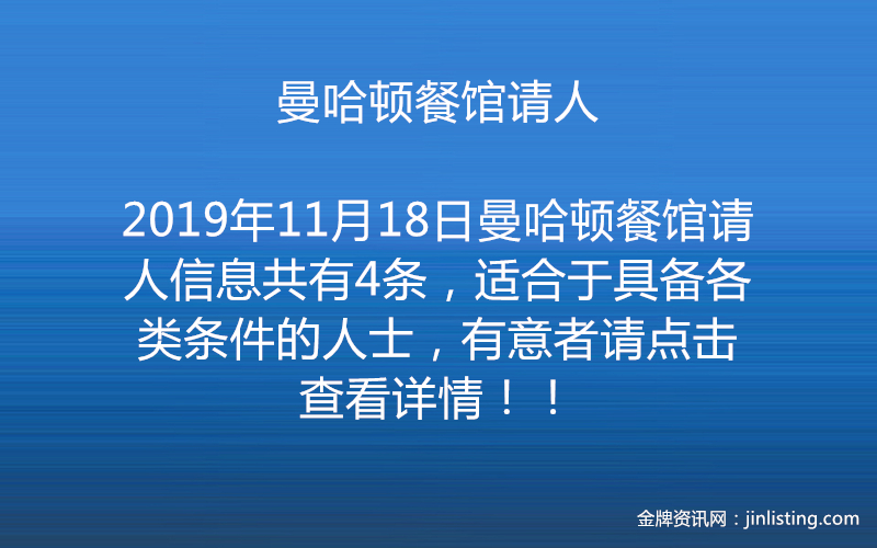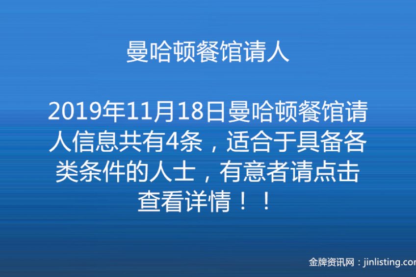 曼哈顿高级中餐川粤餐厅高薪聘请多年经验黑衫企台和Captain,要有团队精神 做事不计较,(懂酒水更好)收银 打包 带位 FT/PT .需报税 需熟手 有意者联系 6462868012