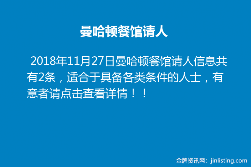 纽约曼哈顿全日餐全职企台 纽约上东城6号地铁,全日餐请全职企台,需要经验、英文流利,要有身份,需要报税,工作时间为周三、周四、周五、周六、周日,需要熟手,半熟手勿试谢谢。电话是6463718647