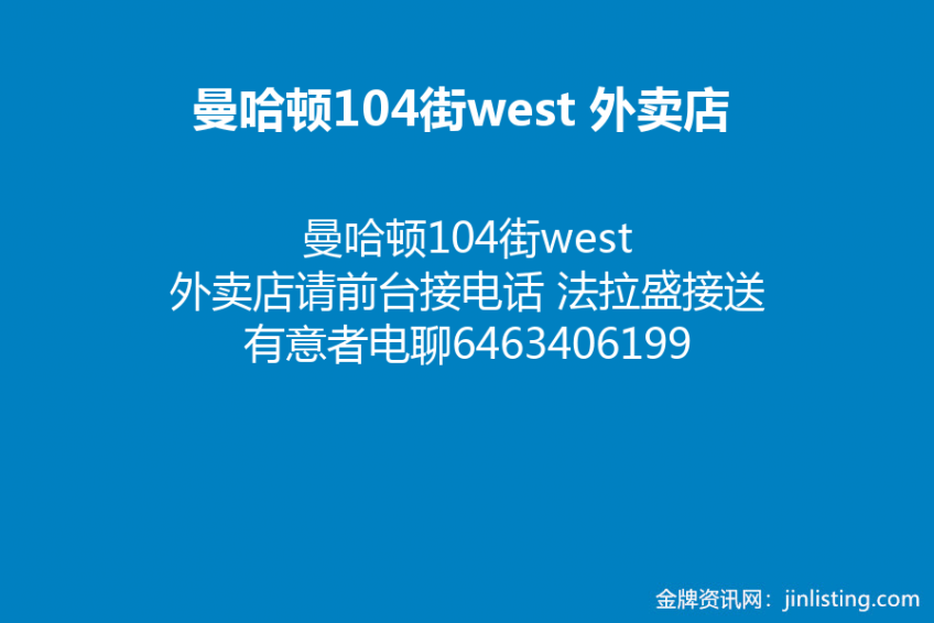 曼哈顿104街west 外卖店请前台接电话 法拉盛接送 有意者电聊6463406199