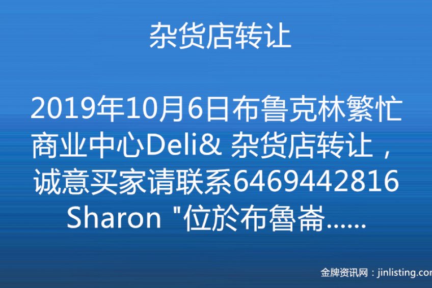 布鲁克林繁忙商业中心Deli& 杂货店转让,诚意买家请联系6469442816Sharon “位於布魯崙 最熱鬧繁華商業街。门口公车站 近地鐵 店面1800呎 +(地下室1500尺) 杂货年营70万 +六合彩年营92万 租金$5300租約7+5年 20年老店 生意穩定 售29万9 有意者請電6469442816”