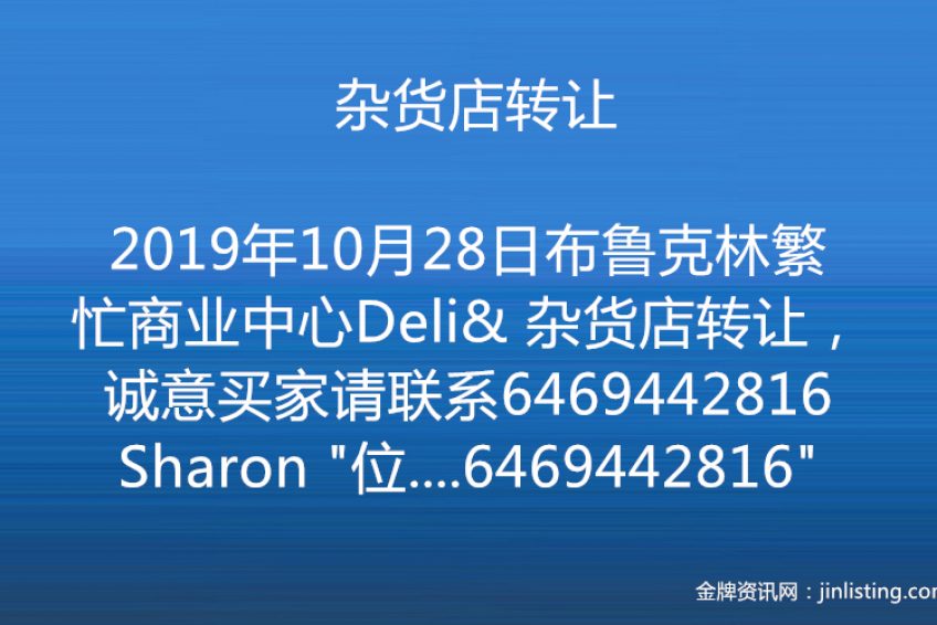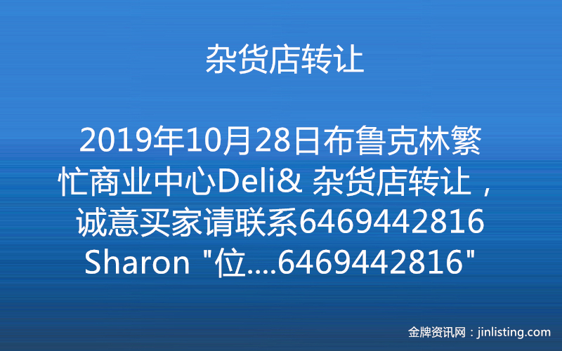 布鲁克林繁忙商业中心Deli& 杂货店转让,诚意买家请联系6469442816Sharon “位於布魯崙 最熱鬧繁華商業街。门口公车站 近地鐵 店面1800呎 +(地下室1500尺) 杂货年营70万 +六合彩年营92万 租金$5300租約7+5年 20年老店 生意穩定 售29万9 有意者請電6469442816”