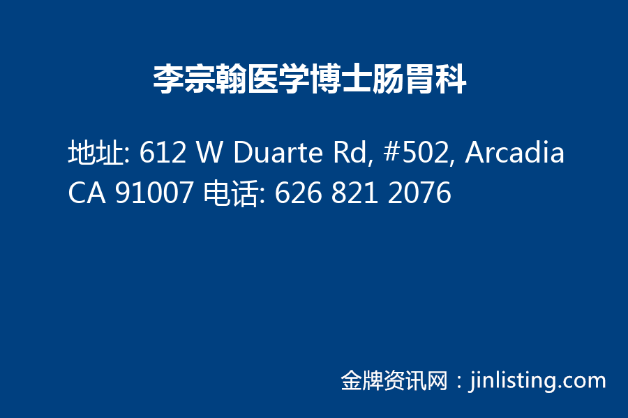 李宗瀚医师专精肝胆肠胃科, UCLA内科专科,UCLA 肝胆肠胃专科 . 美国胃肠科医学会员, 2012年被Pasadena杂志评选为圣谷最佳医师之一, 精通国台英语。主治:一般肠胃科丶老人肠胃科丶儿童肠胃科和肝炎专科,所有大肠镜丶胃镜及直(结)肠镜,。本中心使用最先进的「超音 肠丶胃丶肝胆专科,专治溃疡丶便血丶肝炎丶结石丶胰脏炎。设有先进医学仪器」可对肠胃癌最精确的检查。本中心还有「最新小肠胶囊内视镜」检查。