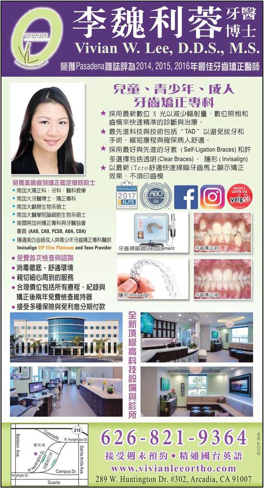李魏利蓉牙醫師 (LEE, VIVIAN W., D.D.S., M.S.) 畢業於南加大, 擁有腦細胞生物系碩士, 同時也是美國與加州矯正専科與牙醫協會會員。李魏利蓉齒列矯正牙醫博士(LEE, VIVIAN W., D.D.S., M.S.)