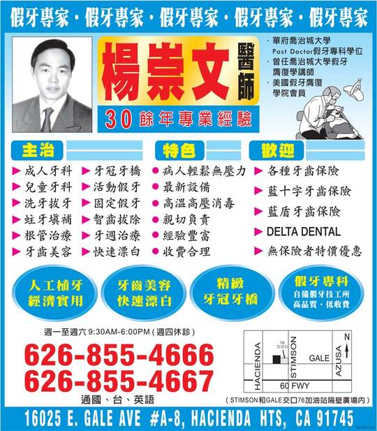 杨崇文牙医师 – Yang, Chung Wen, D.D.S., M.S.