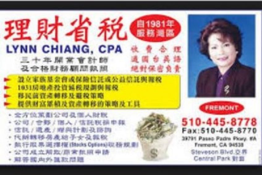 林燕玉會計師事務所 LYNN CHIANG, CPA 地址:39791 Paseo Padre Pkwy., #A, Fremont, CA 94538