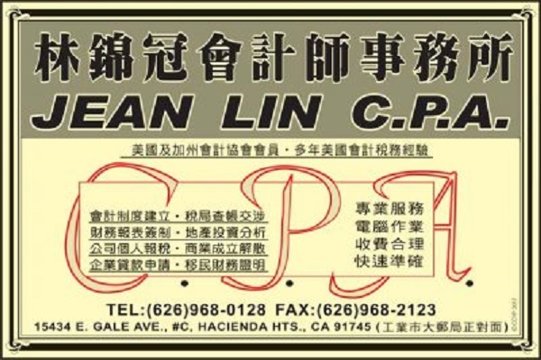 林锦冠会计师,是美国及加州会计协会会员,具有数十年美国会计税务经验。丰富的专业实务经验,将是您事业成功的有利助手。有许多医生、高收入者,均是林会计师的客户。。