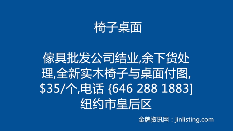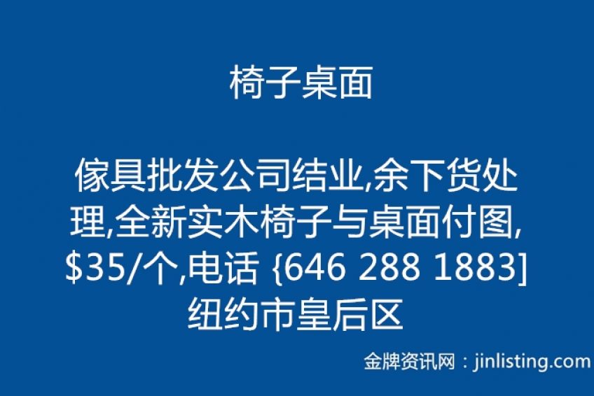 椅子桌面$35个 傢具批发公司结业,余下货处理,全新实木椅子与桌面付图, $35/个,电话 {646 288 1883]纽约市皇后区
