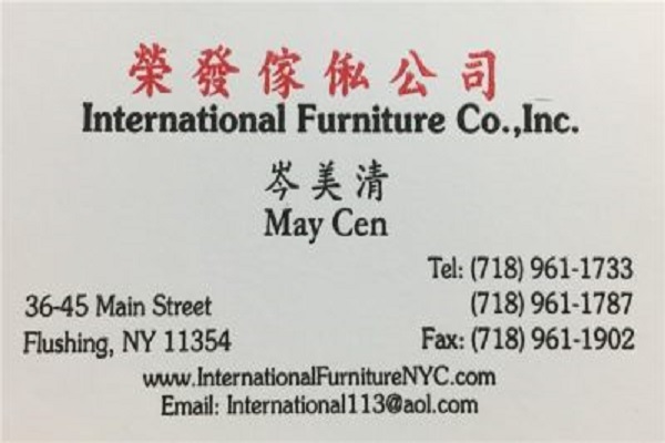 榮發傢俬公司 International Furniture Co.,Inc. 岑美清 May Cen Tel: (718) 961-1733