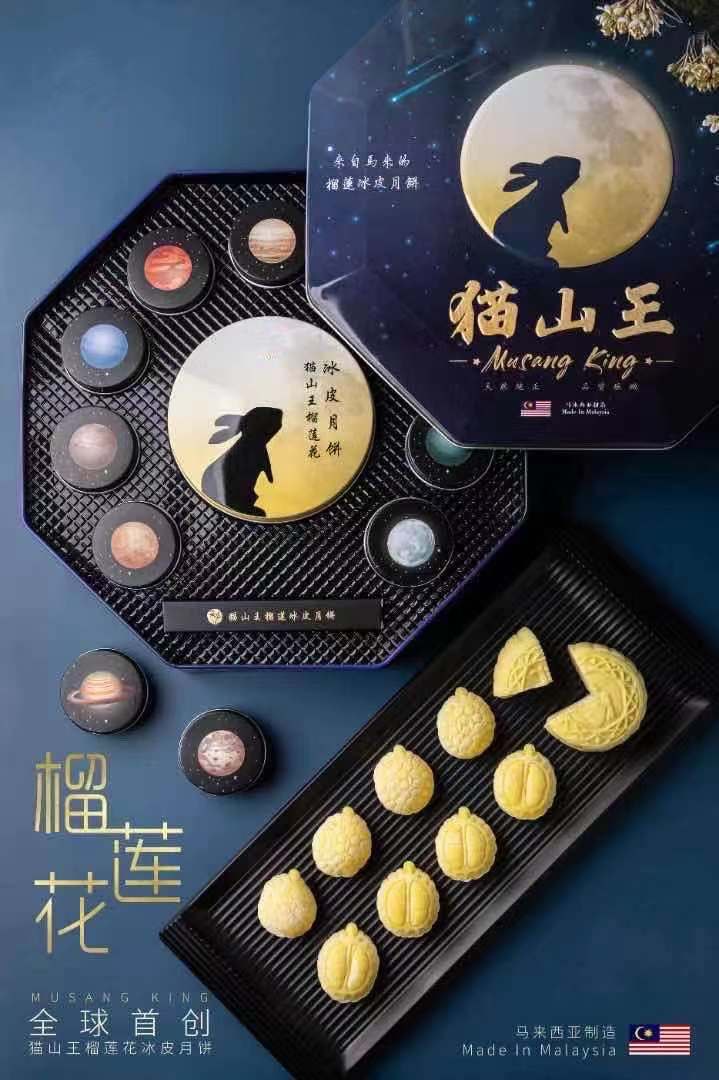 旺嘉乐马来西亚榴莲种植园制作的猫山王榴莲月饼,采用马来西亚猫山王榴莲D197作为馅料,无防腐剂、添加剂,馅大皮薄,咬下去满满的榴莲香味,让人回味无穷。全球首创的猫山王榴莲花冰皮月饼,造型就像一颗小小的榴莲,无论是榴莲皮和果肉都模仿得高度相似,让人一眼就喜欢上。
