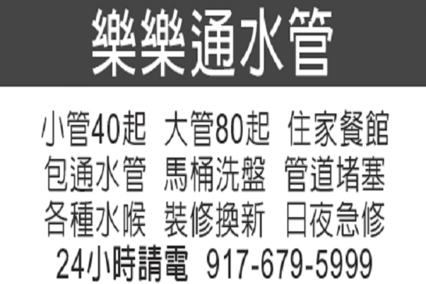 樂樂通水管 917-679-5999