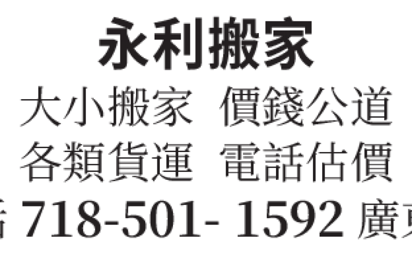 大小搬家 價錢公道 各類貨運 電話估價 電話 718-501-1592廣東人