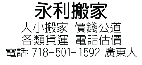 大小搬家 價錢公道 各類貨運 電話估價 電話 718-501-1592廣東人
