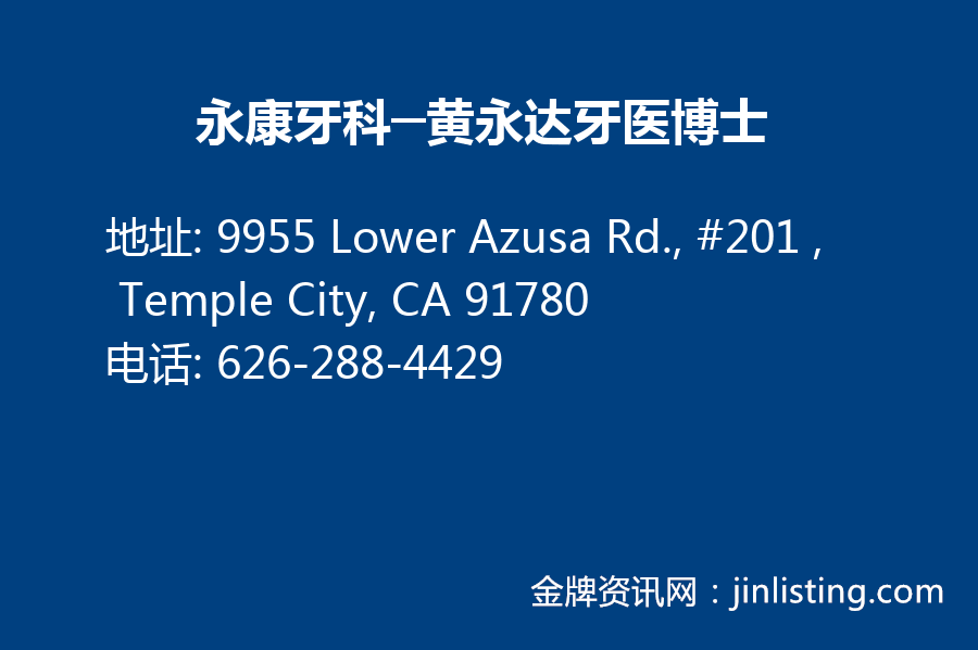 地址: 9955 Lower Azusa Rd., #201 , Temple City, CA 91780 电话: 626-288-4429