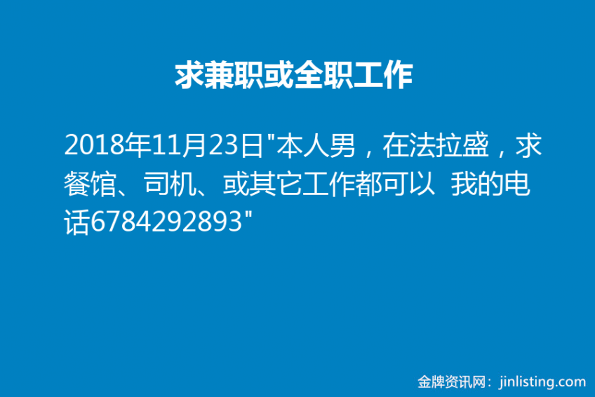“本人男,在法拉盛,求餐馆、司机、或其它工作都可以