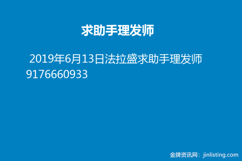 法拉盛求助手理发师 9176660933