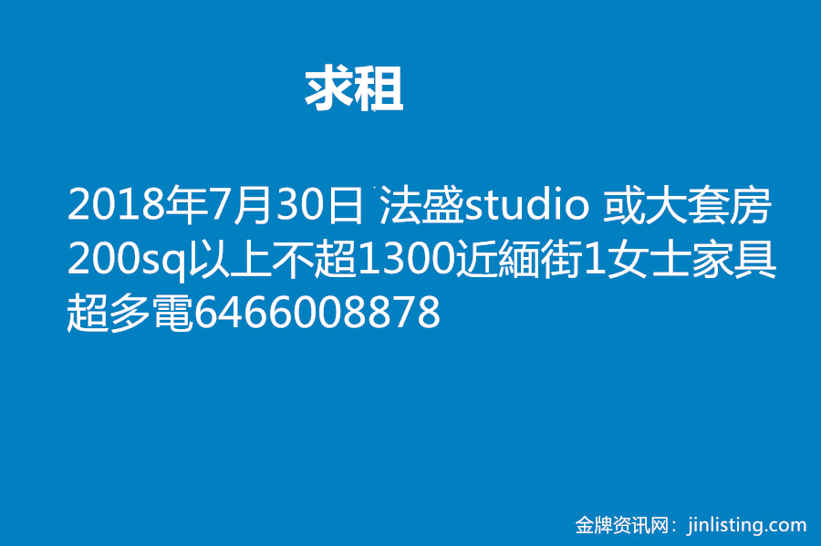 法盛studio 或大套房200sq以上不超1300近緬街1女士家具超多電6466008878