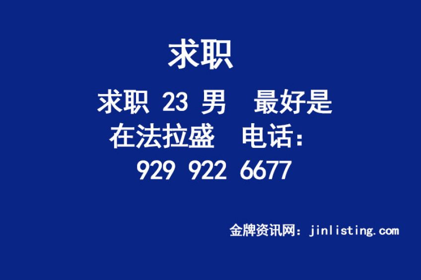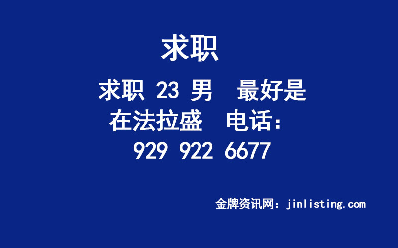 求职 23 男 最好是在法拉盛 电话:929 922 6677