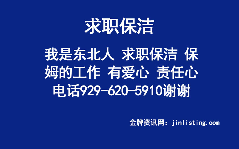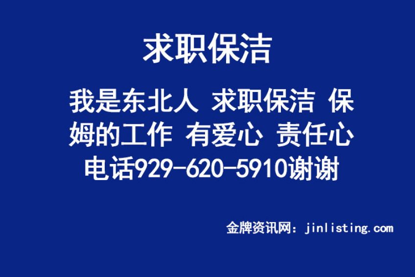 我是东北人 求职保洁 保姆的工作 保洁 有爱心 责任心 电话☎️929-620-5910谢谢🙏