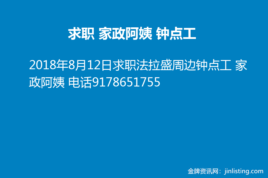 求职法拉盛周边钟点工 家政阿姨 电话9178651755