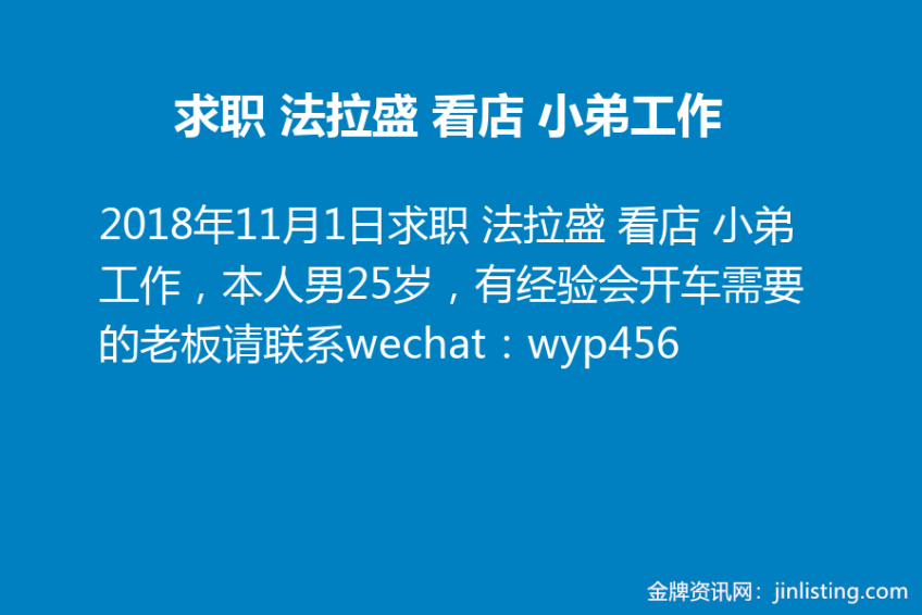 求职 法拉盛 看店 小弟工作 wechat:wyp456