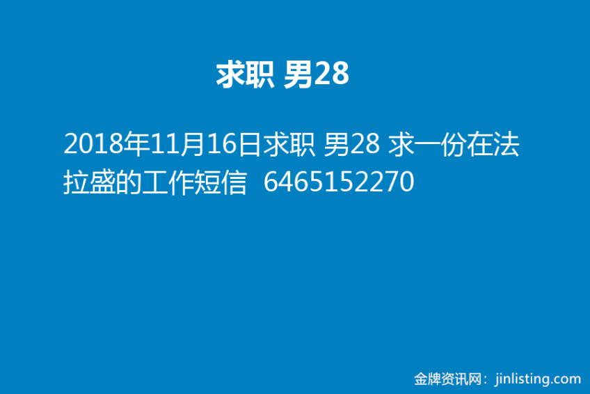 求职 男28 求一份在法拉盛的工作 短信 6465152270