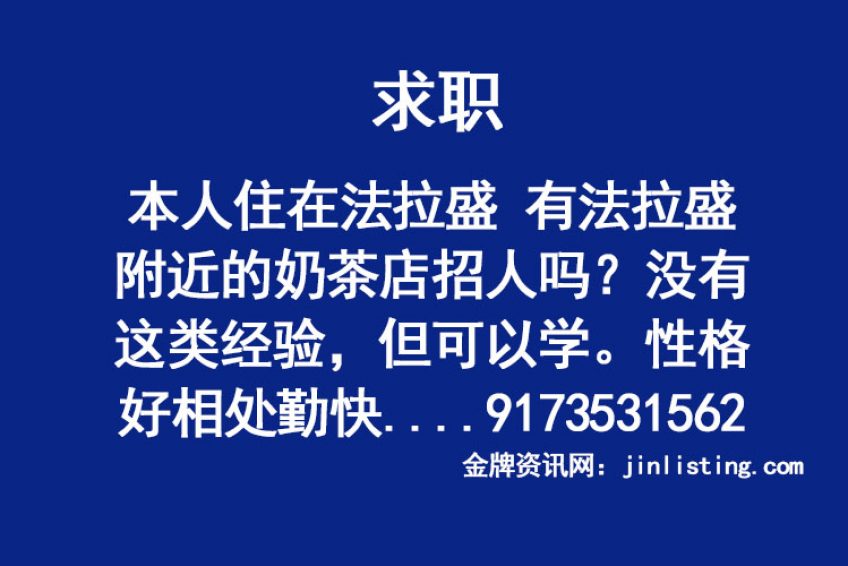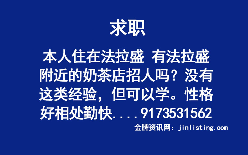 求职 “本人住在法拉盛