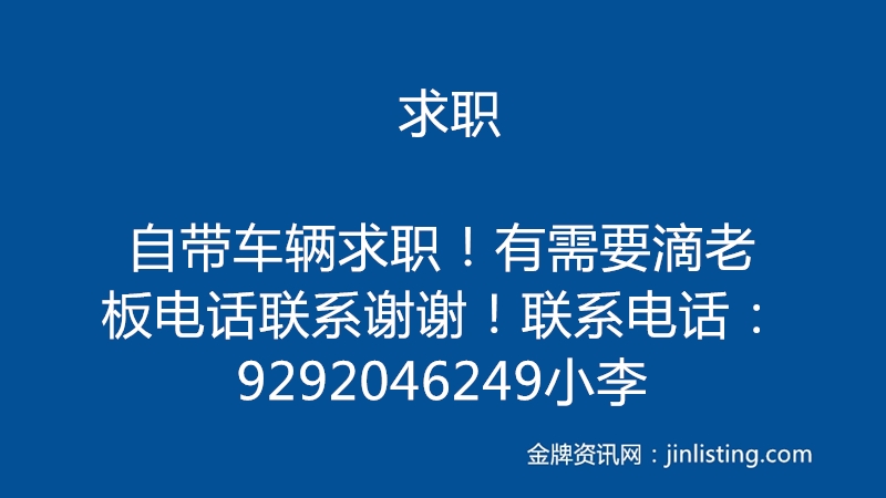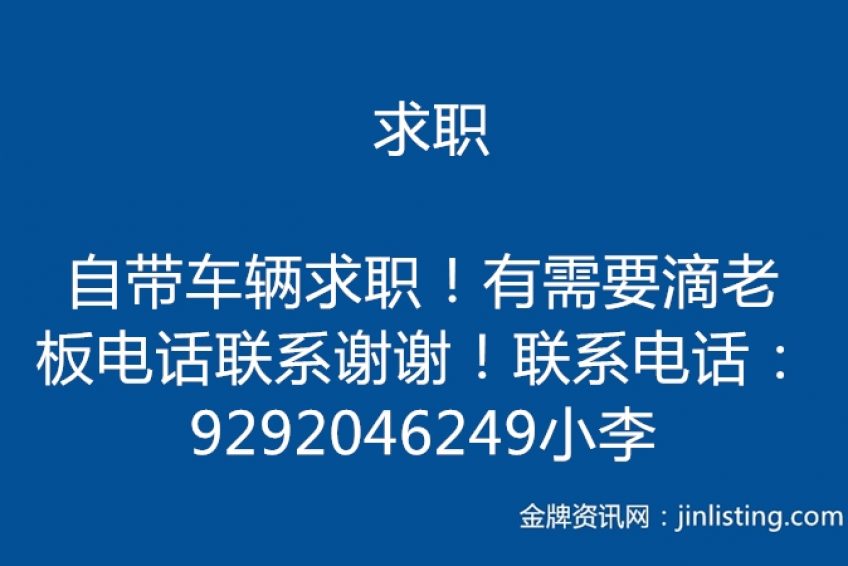 自带车辆求职!有需要滴老板电话联系谢谢!联系电话:9292046249小李