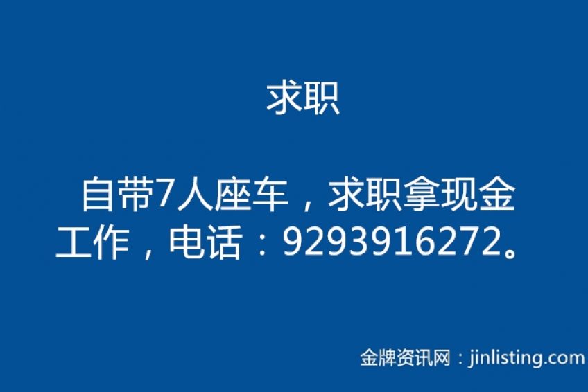 求职 自带7人座车,求职拿现金工作,电话:9293916272。