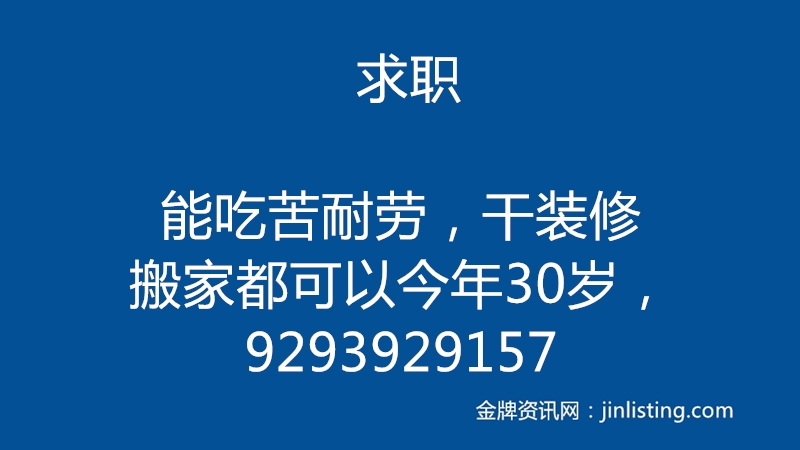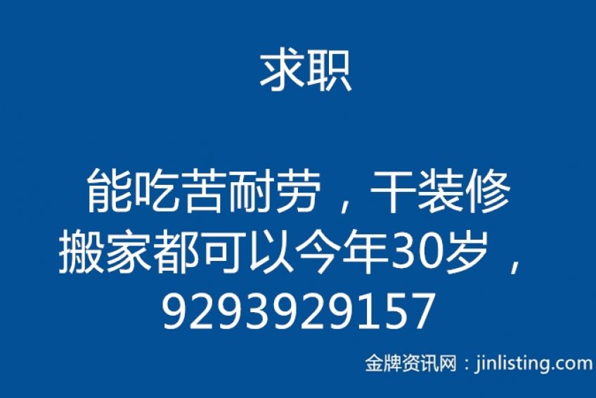 求职,能吃苦耐劳,干装修搬家都可以今年30岁,9293929157