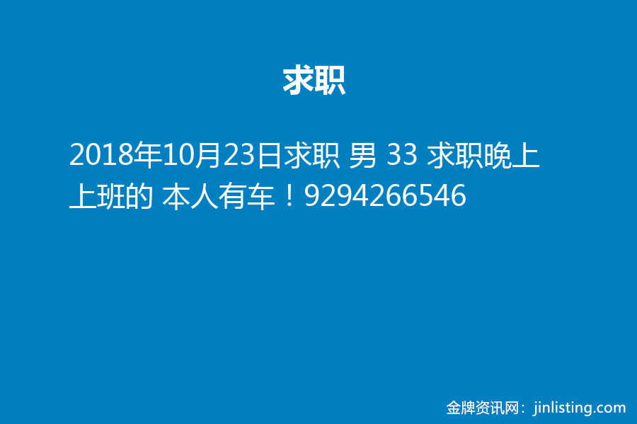 求职 男 33 求职晚上上班的 本人有车!9294266546