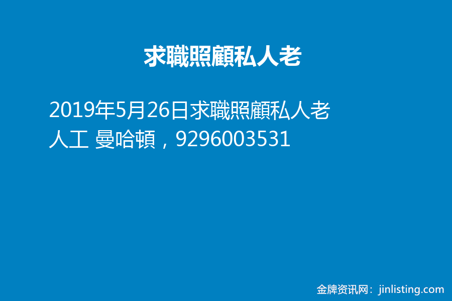 求職照顧私人老人工 曼哈頓,9296003531